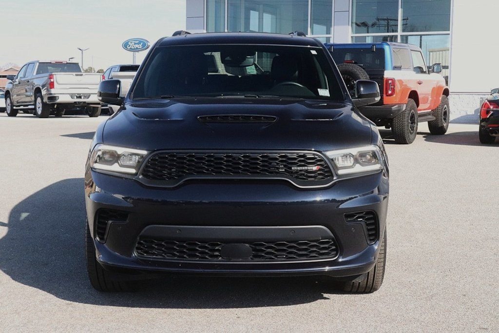 Equipped with Blacktop Package (Black Roof Rails, Gloss Black Badges, Gloss Black Exterior Mirrors, GT Gloss Black Badging, Integrated Roof Rail Crossbars, Satin Black Dodge Tail Lamp Badge, and Wheels: 20" x 8.0" Black Noise Aluminum), Quick Order Package 2BH GT Plus (115V Auxiliary Power Outlet, 180 Amp Alternator, 506 Watt Amplifier, 7 & 4 Pin Wiring Harness, 9 Alpine Amplified Speakers w/Subwoofer, Adaptive Cruise Control w/Stop, Advanced Brake Assist, Auto High Beam Headlamp Control, Auto-Dimming Exterior Driver Mirror, Blind Spot w/Trailer Detection, Bright Cargo Area Scuff Pads, Bright Front Door Sill Scuff Pads, Class IV Receiver Hitch, Dual Remote USB Port - Charge Only, Exterior Mirrors w/Heating Element, Exterior Mirrors w/Memory, Exterior Mirrors w/Supplemental Signals, Full Speed Forward Collision Warning Plus, Heated Second Row Seats, Heavy-Duty Engine Cooling, Lane Departure Warning Plus, Leather Trimmed Bucket Seats, Leather Wrapped Door Panels, LED Auxiliary Low Beam & Turn Signal, ParkSense Front/Rear Park Assist w/Stop, Power 6x9 Multi-Function Foldaway Mirrors, Power Driver/Passenger 4-Way Lumbar Adjust, Power Sunroof, Power Tilt & Telescopic Steering Column, Radio/Driver Seat/Mirrors Memory, Rain Sensitive Windshield Wipers, Rear Load Leveling Suspension, Red Accent Stitching, Security Alarm, Sun Visors w/Illuminated Vanity Mirrors, Trailer Brake Control, Ventilated Front Seats, and Wireless Charging Pad), 19 harman/kardon Amplified Speakers w/Subwoofer, 3.45 Rear Axle Ratio, 3rd row seats: split-bench, 4-Wheel Disc Brakes, 6 Speakers, 825 Watt Amplifier, ABS brakes, Air Conditioning, Alloy wheels, AM/FM radio: SiriusXM w/360L, Apple CarPlay/Android Auto, Auto-dimming Rear-View mirror, Automatic temperature control, Brake assist, Bumpers: body-color, Cloth Bucket Seats w/Shift Insert, Compass, Delay-off headlights, Driver door bin, Driver vanity mirror, Dual front impact airbags, Dual front side impact airbags, Electronic Stability Control, Emergency communication system: Dodge Connect, Floor Console w/Leather Armrest, Four wheel independent suspension, Front anti-roll bar, Front Bucket Seats, Front Center Armrest w/Storage, Front dual zone A/C, Front reading lights, Fully automatic headlights, Garage door transmitter, Heated door mirrors, Heated front seats, Heated steering wheel, Illuminated entry, Knee airbag, Leather steering wheel, Low tire pressure warning, Navigation System, Occupant sensing airbag, Outside temperature display, Overhead airbag, Overhead console, Panic alarm, ParkView Rear Back-Up Camera, Passenger door bin, Passenger vanity mirror, Power door mirrors, Power driver seat, Power Liftgate, Power steering, Power windows, Radio data system, Radio: Uconnect 5 Nav w/10.1" Display, Rear air conditioning, Rear anti-roll bar, Rear reading lights, Rear seat center armrest, Rear window defroster, Rear window wiper, Remote keyless entry, Speed control, Speed-sensing steering, Speed-Sensitive Wipers, Split folding rear seat, Spoiler, Sport steering wheel, Steering wheel mounted audio controls, Tachometer, Telescoping steering wheel, Tilt steering wheel, Traction control, Trip computer, Variably intermittent wipers, Voltmeter, and Wheels: 20" x 8.0" Fine Silver.